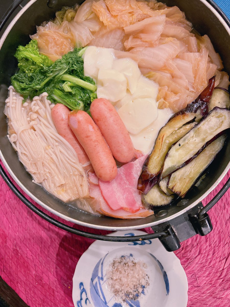 今日は白菜のお鍋。お仕事しながら電鍋で柔らかく煮込んでおいたのです