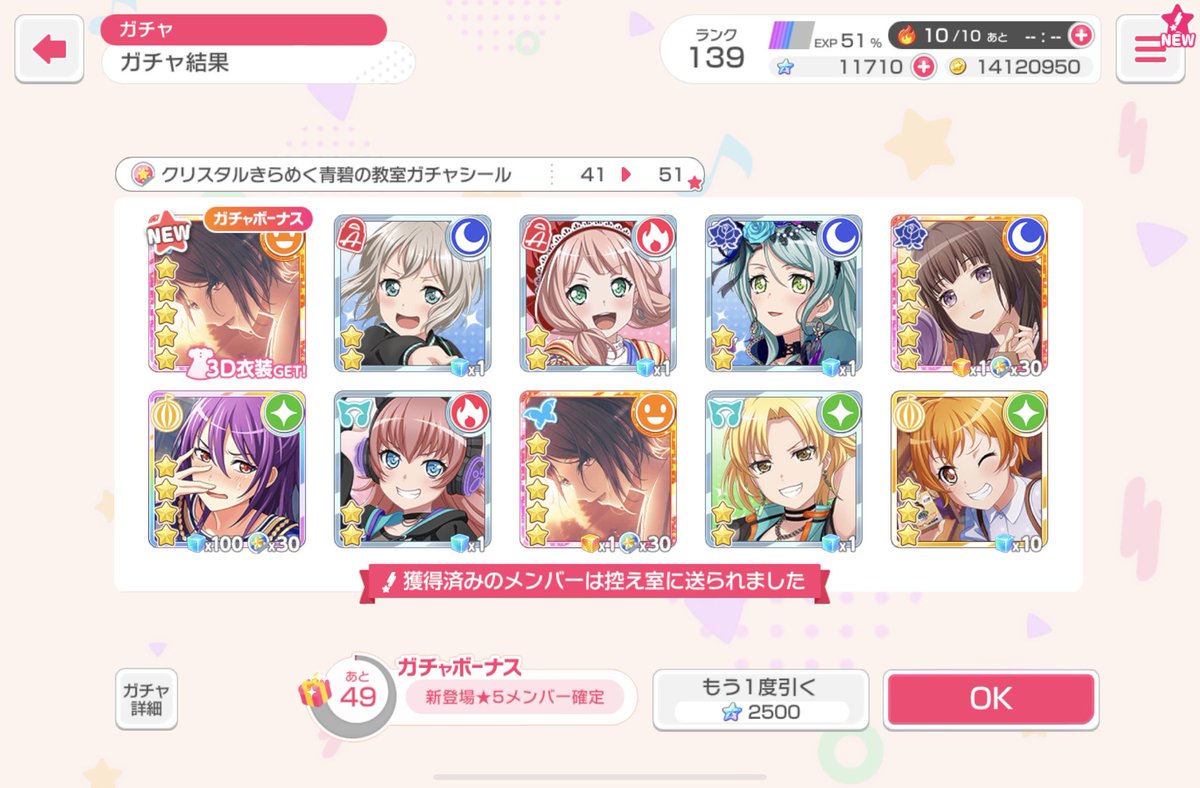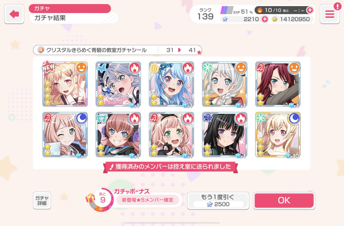 からの。あと10連したら星5るいるいorとーこちゃん…となったら引くよね。急に神引きしたよね。