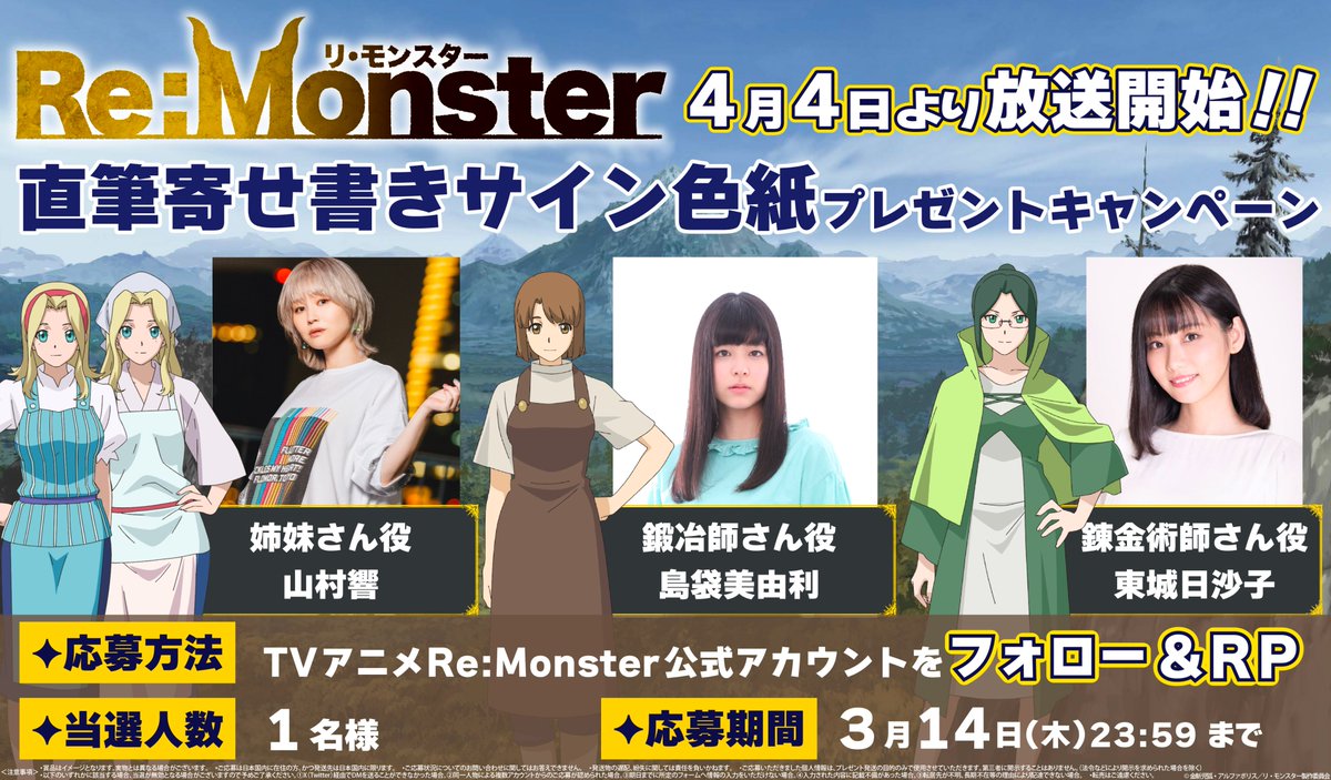 ✦✧TVアニメ「𝐑𝐞:𝐌𝐨𝐧𝐬𝐭𝐞𝐫」4月4日放送開始!!