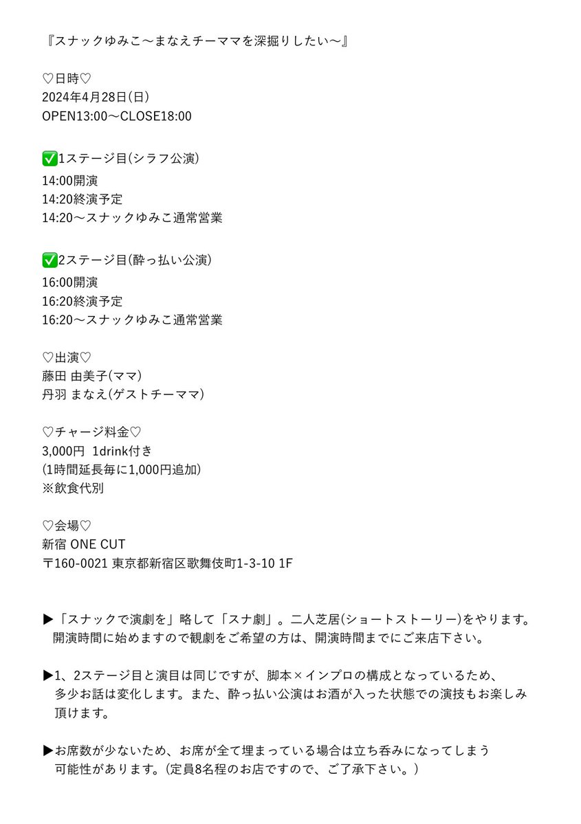 #スナ劇「スナックゆみこで会いましょう」から!!!