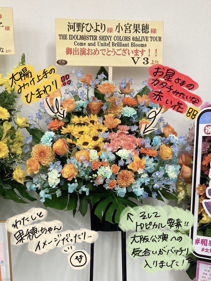 わたしの名前が書かれていたフラスタ🌼に、かきかき✍️させていただきました!✨✨✨他のメンバーのお花もとっても綺麗で、大阪城ホールが素敵なblooms🌻でいっぱいで幸せでした!🤍
