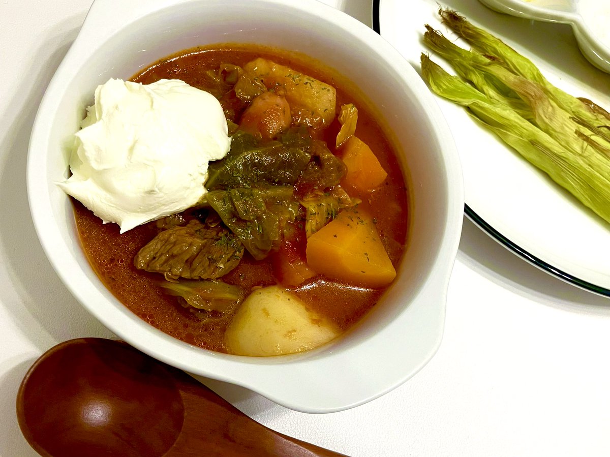 久しぶりにボルシチ作ったよ〜 母からもらったヤングコーンも♪