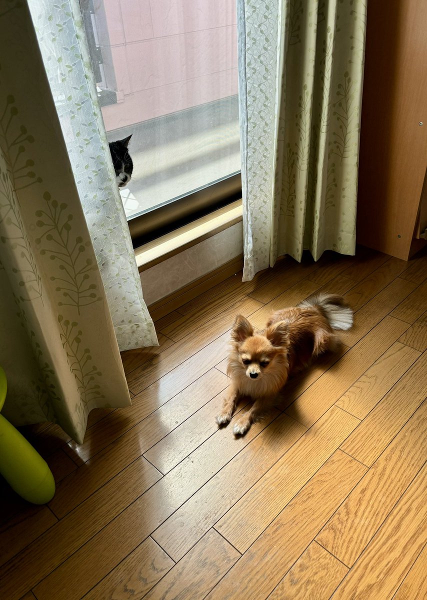 おはよ💖 仲が良いのか悪いのか おかしな二匹☺️
