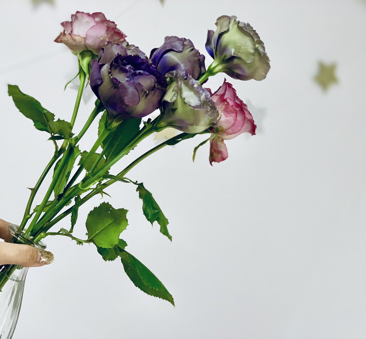 お祝いのお花は、ヨハらしい色のトルコキキョウとバラを。😈😈