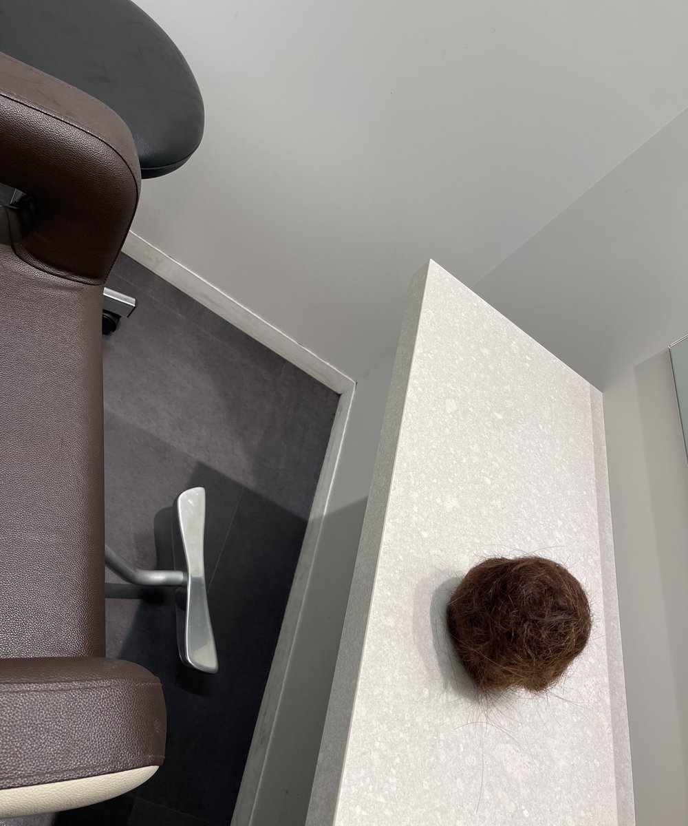 ずっと美容院行きたかったからさっぱりした〜なかよしの美容師さんが切った髪の毛丸めてくれたよ✨前田玉!でかい!!