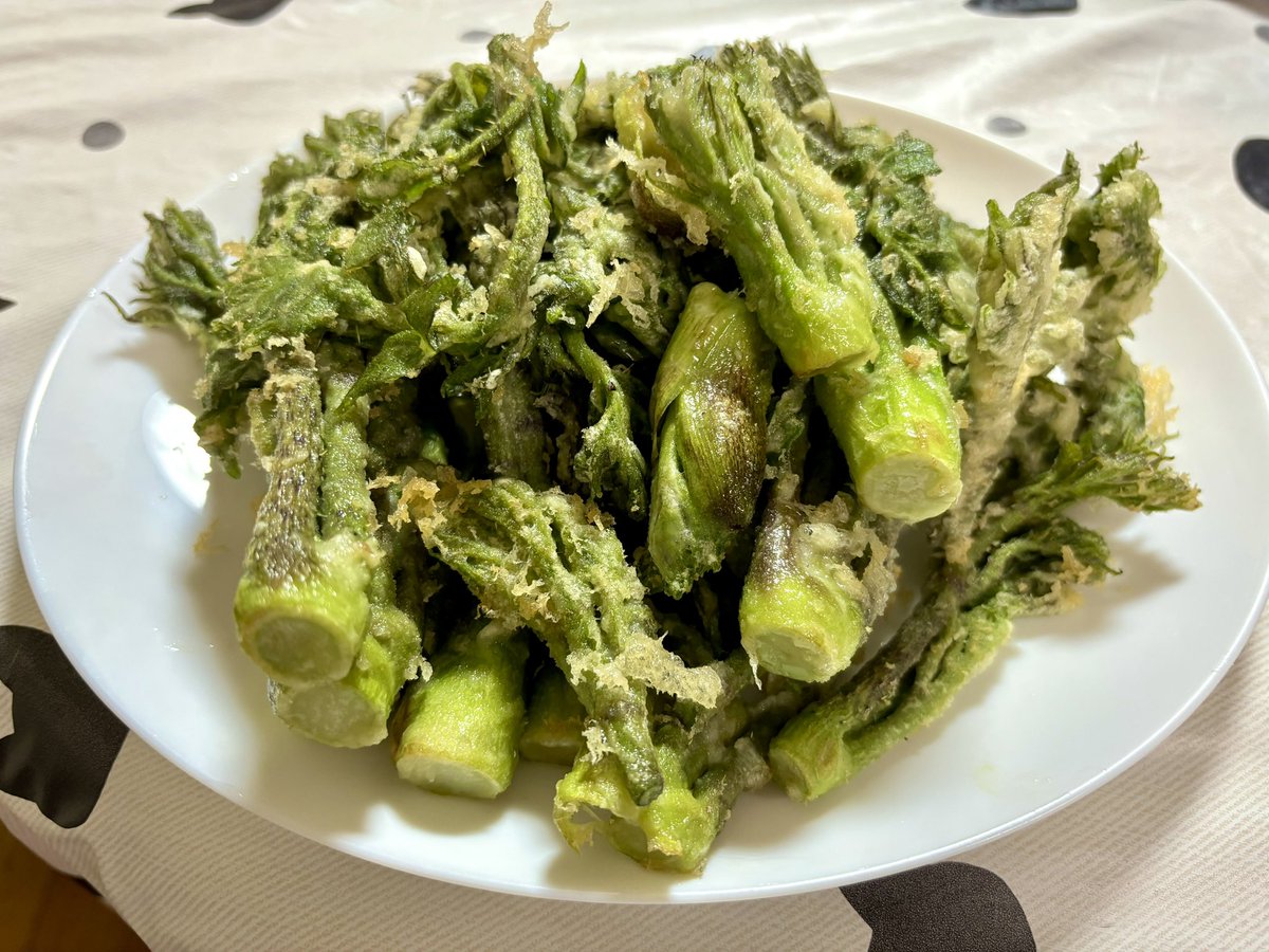 ひたすら タラの芽の天ぷら 抹茶塩で うんめぇ〜〜〜😆 こりゃ日本酒🍶いっちゃうね