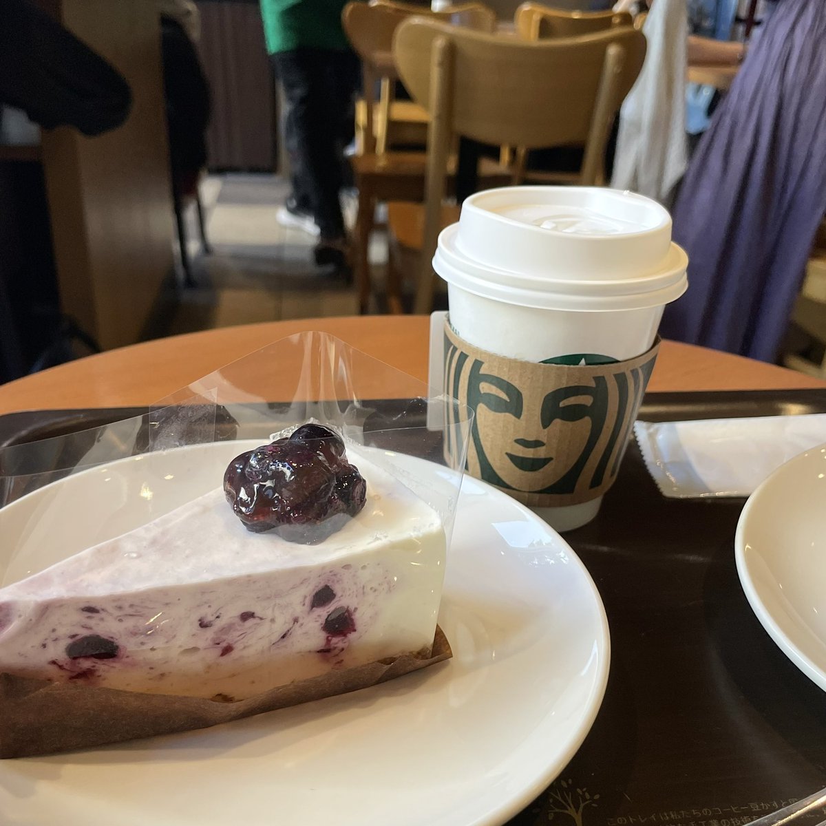 お仕事終わってスタバで例のストロベリー🍓……と思っていたら、隣に美味しそうなブルーベリー🫐のチーズケーキが並んでいたのでそっちにしてしまった。