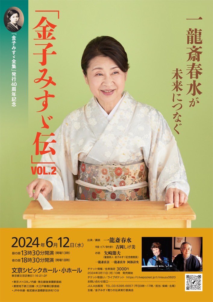 #春水 #麻上洋子 #金子みすゞ #シビックホール #吉岡しげ美 #矢崎節夫 #JULA