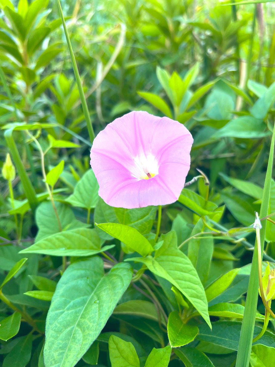 一輪だけぽつんと風に揺れていたヒルガオの花。かわいい☺️