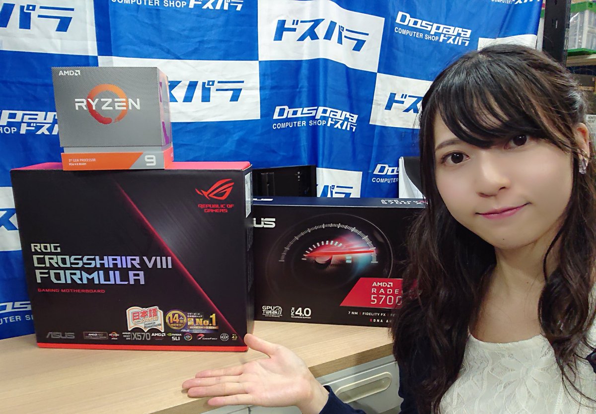 そしてASUSさんのROG CROSSHAIR Ⅷ FORMURとRADEON 5700XTとも撮ったよ〜〜😊😊新しいCPU出ると本当に盛り上がりますね!アキバのお祭り感楽しかったです✨✨