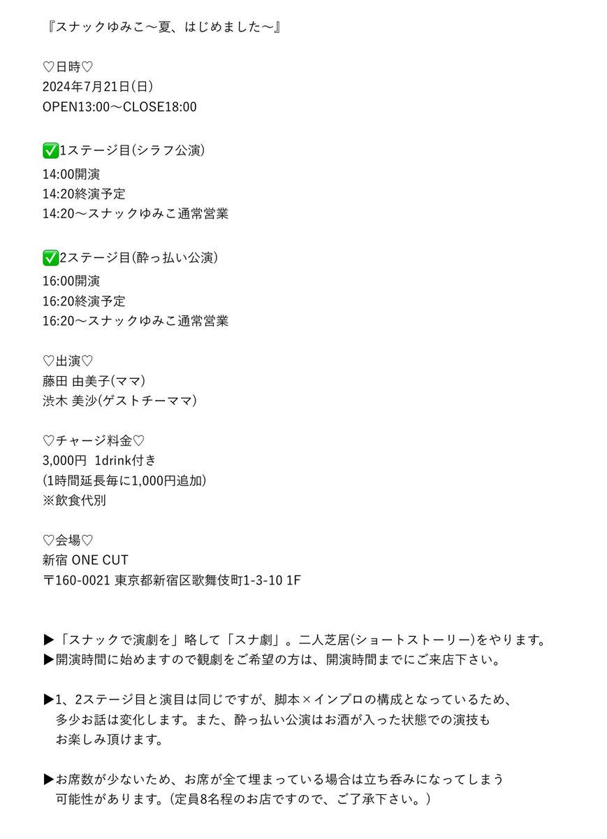 美沙ちゃんとやりたい #スナ劇 の演目があるので、皆さまお楽しみに☺️