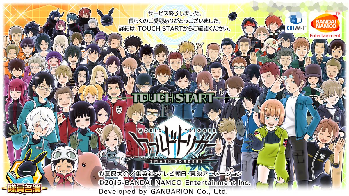 今までありがとう、ワールドトリガースマッシュボーダーズ!!!隊員名簿と仮想戦闘もありがとう。゚(゚´Д`゚)゚。大切にします…!!!