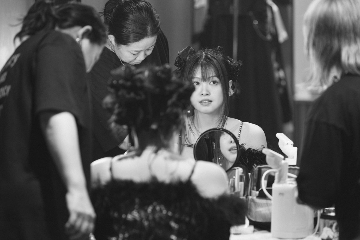 衣装を着たら背筋が伸びて、メイクで目力が強くなって…って、少しずつステージに向けて気持ちが高まっていくのを毎回この瞬間に感じてるんだ〜。
