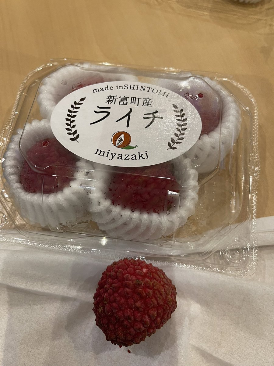 スタジオで頂いた、この赤い実は…宮崎、新富町産のライチ❣️甘くてジューシーで、ライチ特有のぷりぷりつるんの食感は、今まで食べたことない肉厚でした〜!美味しかった〜😋ご馳走さまでした。これは探し求めたくなる〜