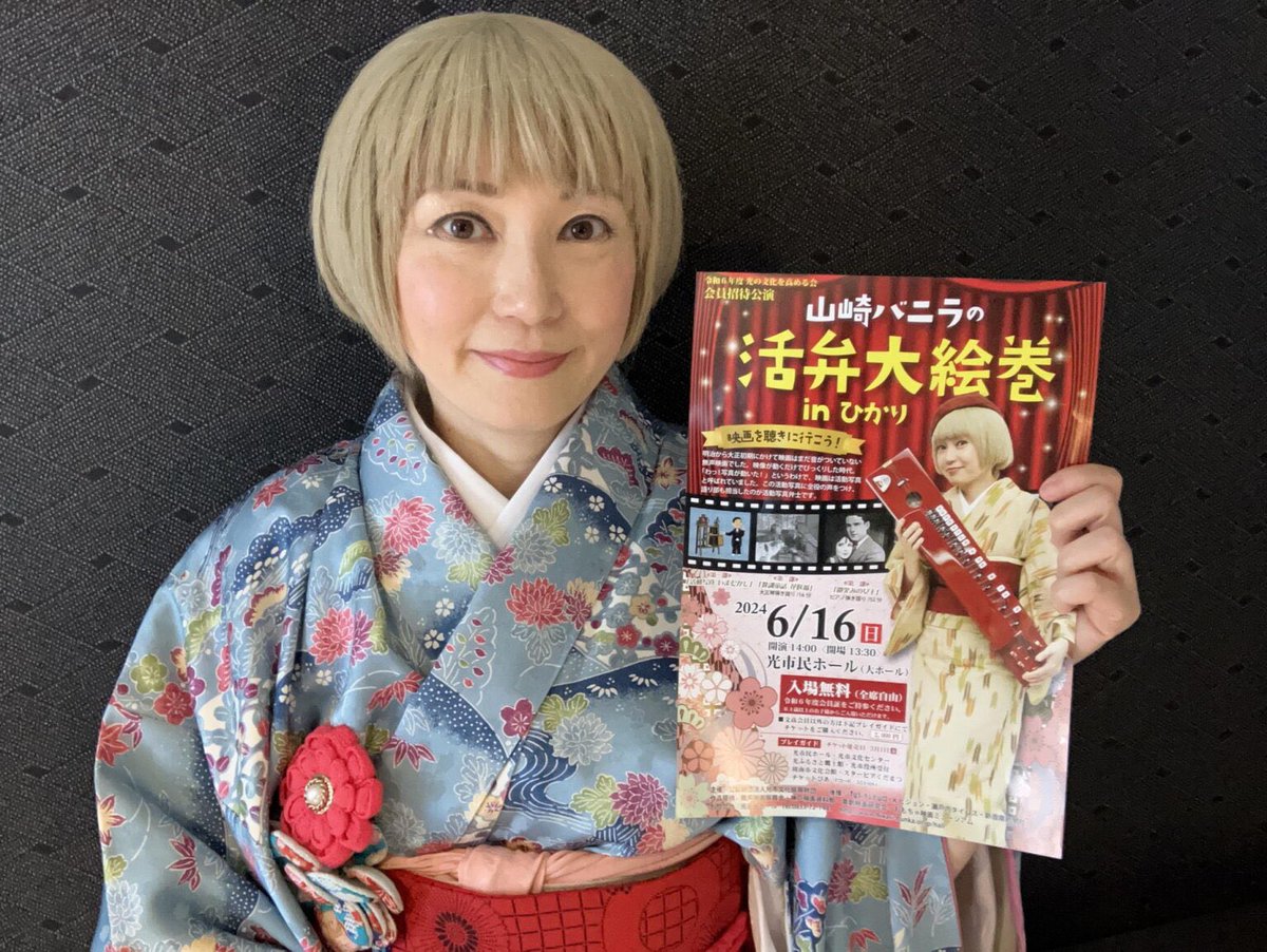 I will be giving a katsuben performance tomorrow in Hikari, Yamaguchi, Japan, and will speak for two hours alone, playing the piano and taisho harp.