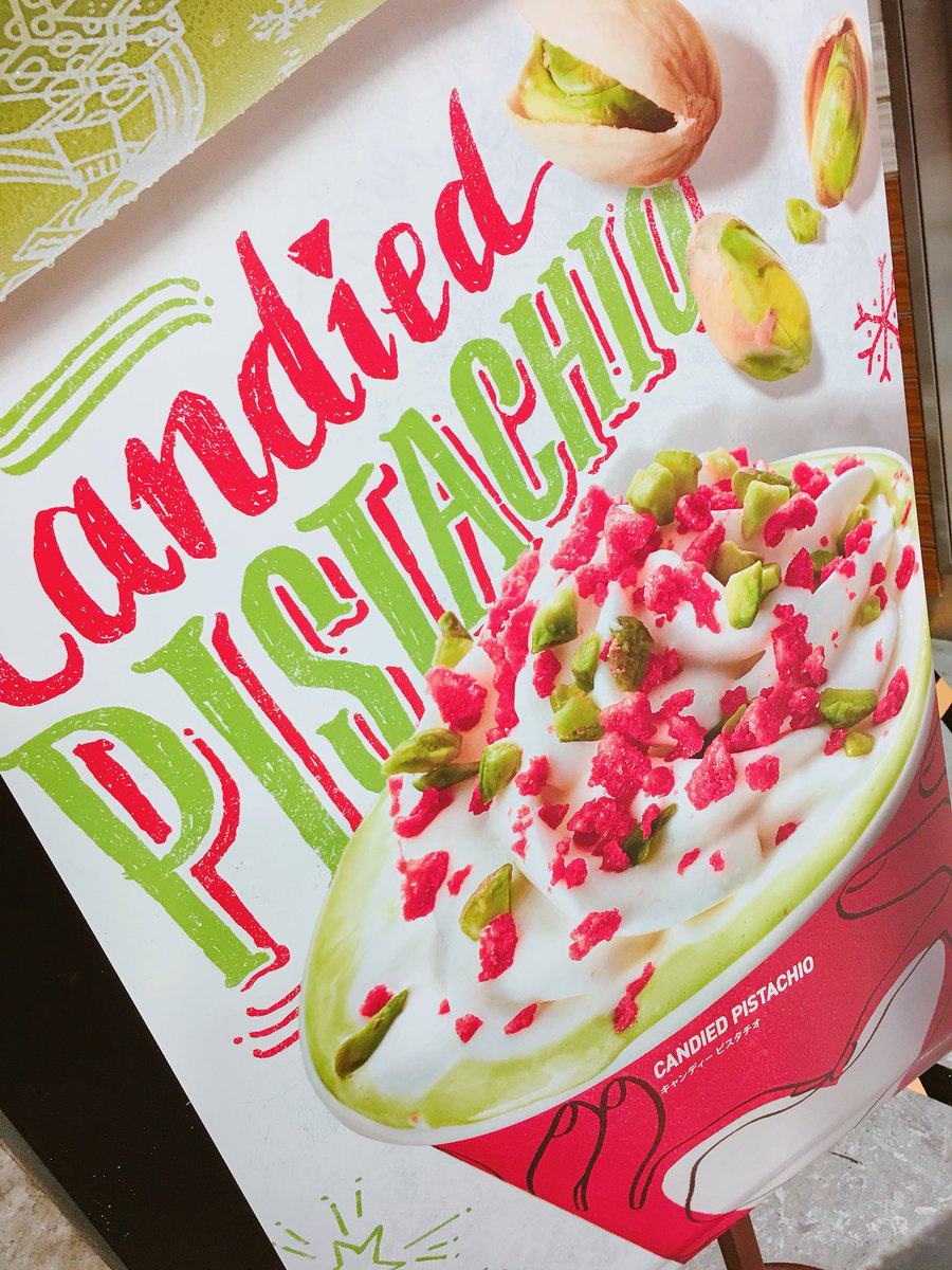今日から販売のキャンディーピスタチオフラペチーノヾ(*´∀`*)ノ . あ、でね?新幹線の改札内のスタバで注文したら、乗車時刻をちゃんと聞いてくれてびっくり(๑º ロ º๑)!!ちょっとした気遣いが嬉しかったです💕さすがスタバ!!