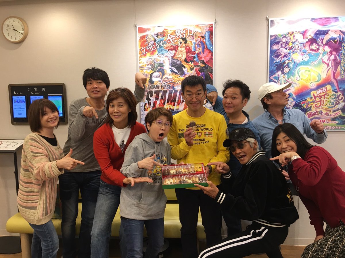 ワンピース収録後にお誕生日をお祝いしていただきました💕 そして久々に9人が揃いましたよ〜🤗🎂 船長に一人写真を撮ってもらったらチョーさんが写り込む⁉️ 面白いね〜🤣