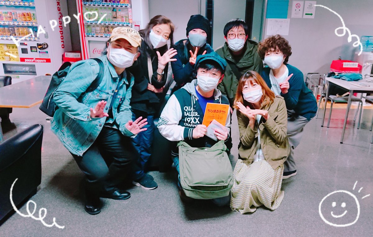 きむらきょうやさんを囲んで🌸 えーと、左から丸尾くん、杉山くん、野口さん、大野くん、前田さん、藤木。でしたぁ~😊 #ちびまる子ちゃん