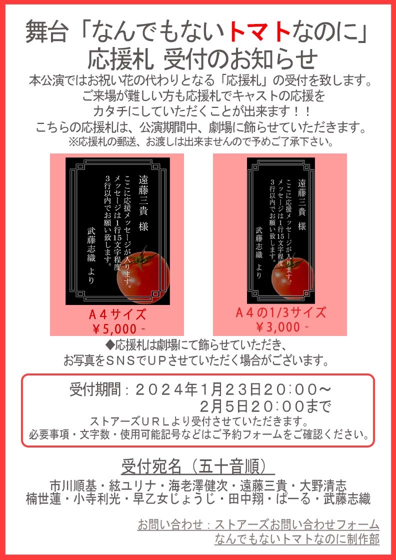告知のフライヤーに、演出と脚本の名前の記載がなく、大変失礼致しました。