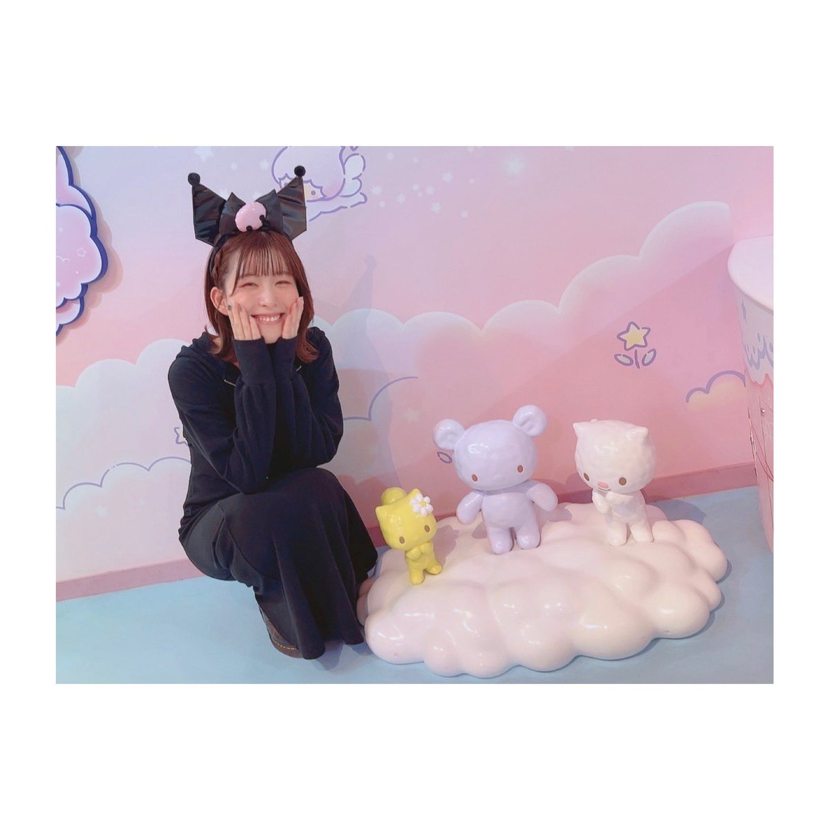 これは先日、友人とクロミちゃんのカチューシャをつけてピューロランドに行った時の写真です💭