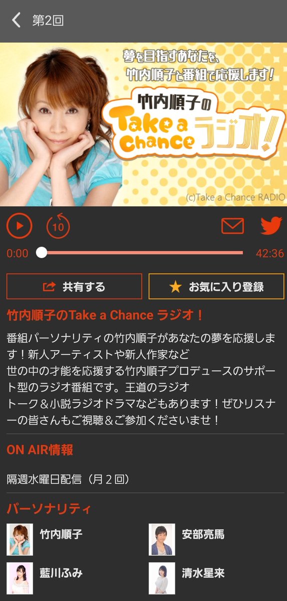 『竹内順子のTake a Chance ラジオ!』第2回が配信開始!
