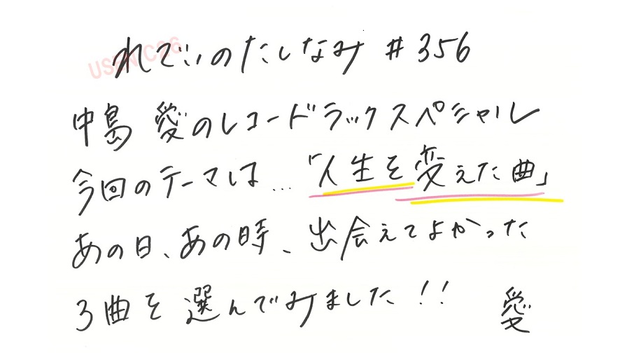 今回は、「人生を変えた曲」特集です。愛さんが選んだ曲とは?