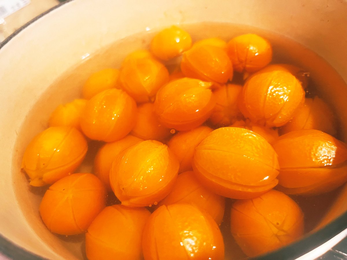 金柑の甘露煮作っております🍊 喉やら鼻の粘膜にもいいそうですよ! 風邪とかの強い味方、かつ美味しい🤤 生の金柑もむしゃむしゃ食べます