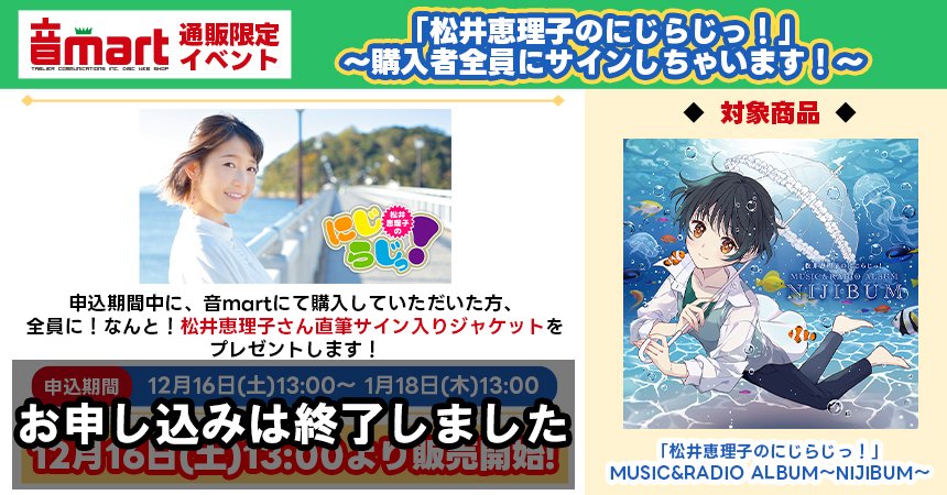 「松井恵理子の #にじらじっ!」MUSIC&RADIO ALBUM~NIJIBUM~ を対象期間にご購入された方へ、サインの発送を開始しました!