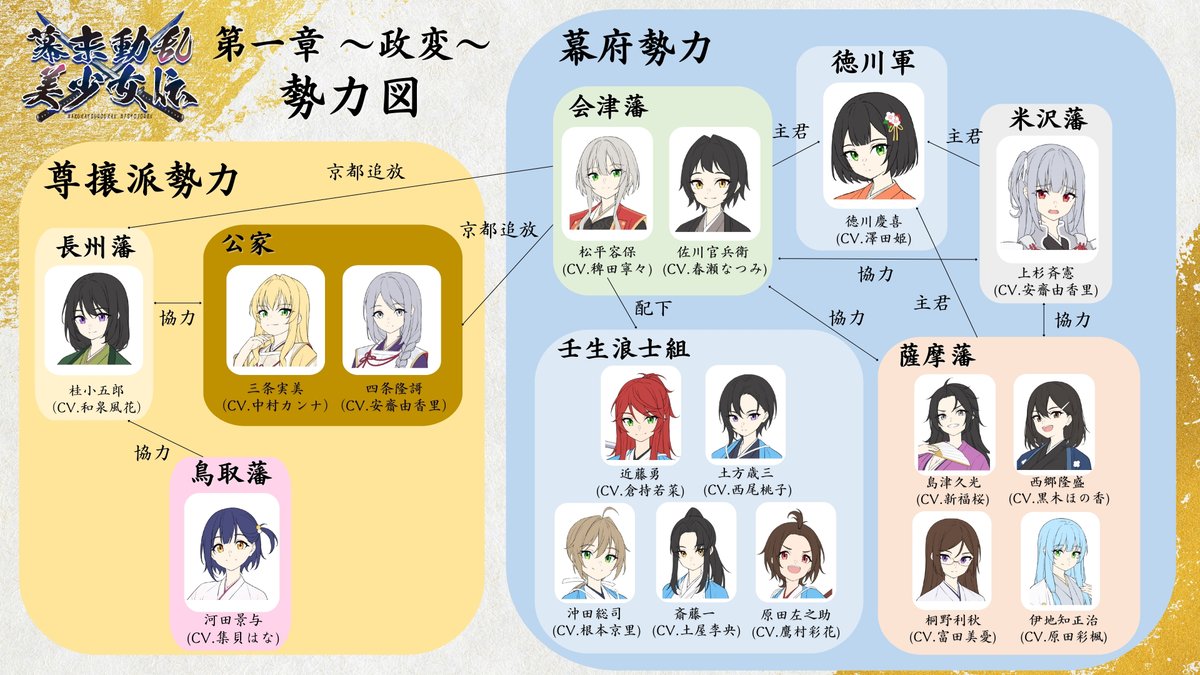 『~第一章 政変~』の勢力図・登場人物(出演者)はこちらをご覧ください。