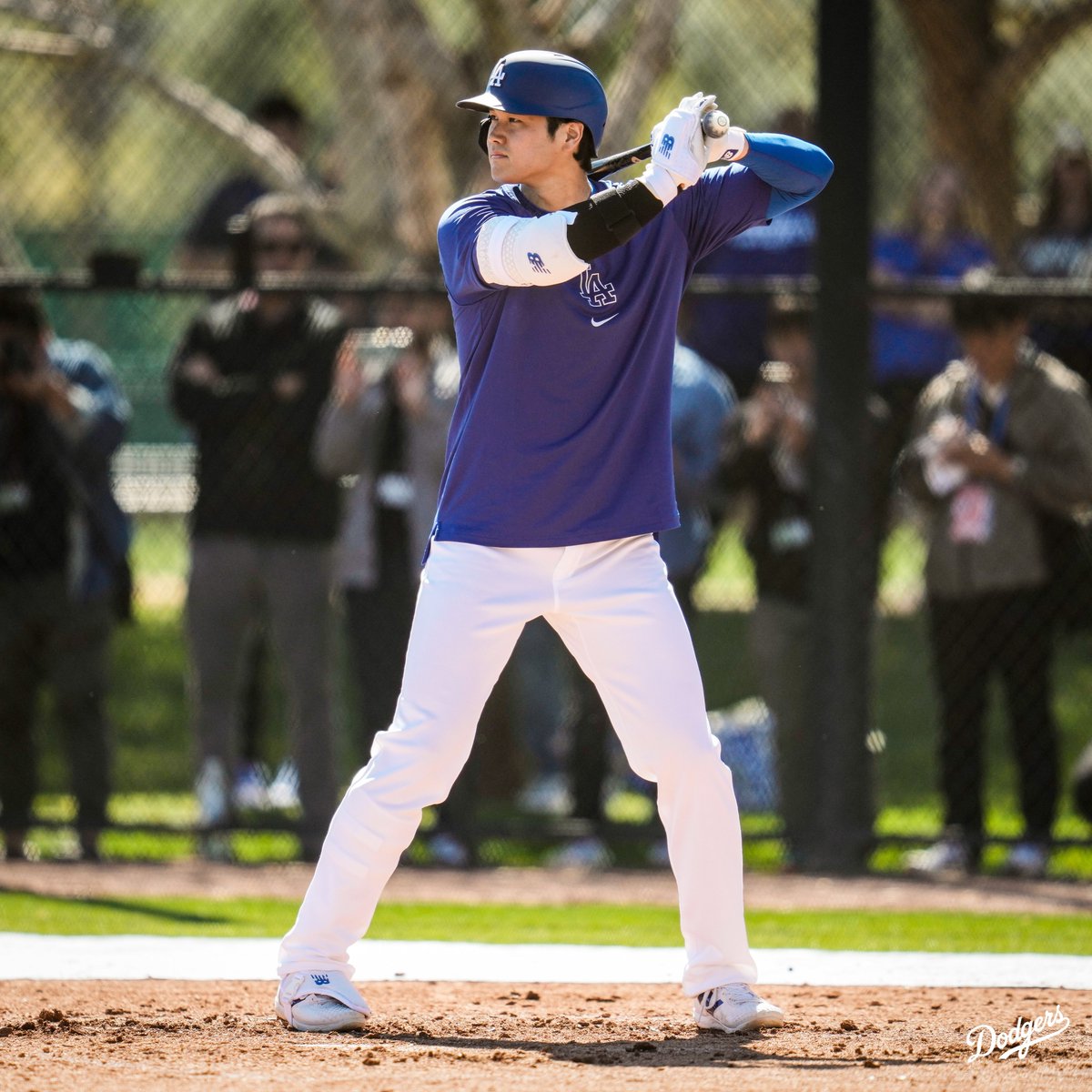 A photo of Shohei Ohtani getting ready to hit during live batting practice.