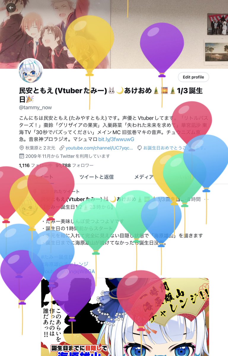 改めまして民安ともえたみー共々1月3日の誕生日を迎えました。 Vtuber活動も3年を越えて、Vでお仕事やレギュラーをいただけるようになりましたが、変わらず、面白いものや楽しいことを沢山作って行けたらと思っております。ポンではなく。ポン面白いではなく。