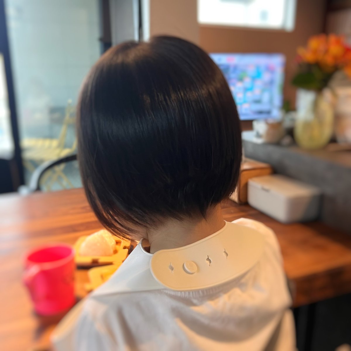 チビたんの後ろ髪、初めて切った〜♡