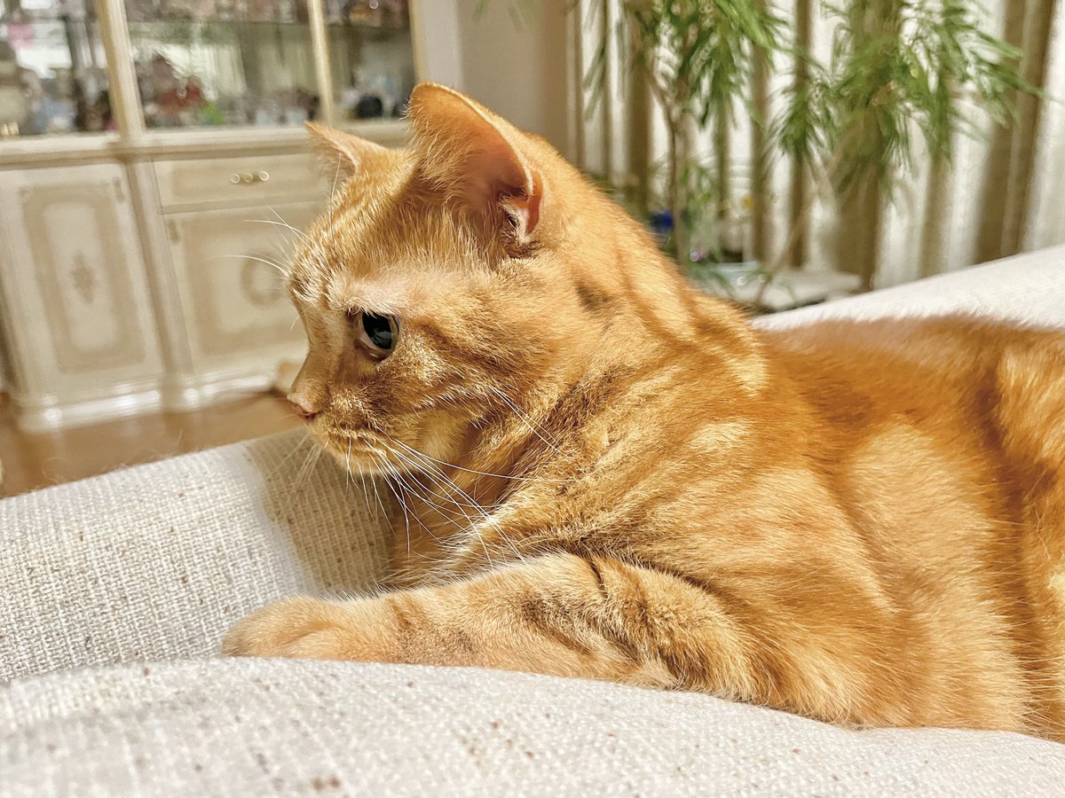 暗くなってからベランダ鉢のお世話。風の影響なのか支柱は折れてるし鉢は倒れているしで心も折れそう。2時間ほど格闘してくったり。私の癒し。スヤスヤ天使🐈