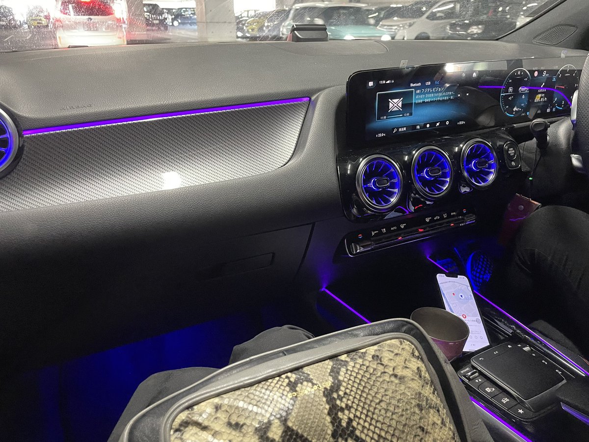 友達がGLAで迎えに来てくれたんだけど、内装の光り方がウーハー積んだヤンキーの車みたいだった!!笑