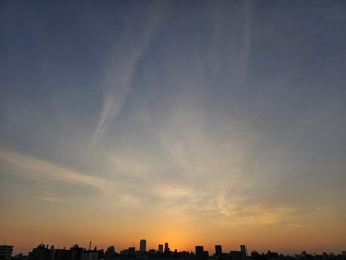 今朝の日の出は朝焼け色よりも、カラフルな状態でした。本日の東京は急な雷雨⛈️があったりなかったりな不安定極まりない空模様だって。早朝も日差しが眩しいと思ったとたん暗雲たちこめてザッと🌧️降って、また日が出てくるみたいな感じでした。おはようございます☀️