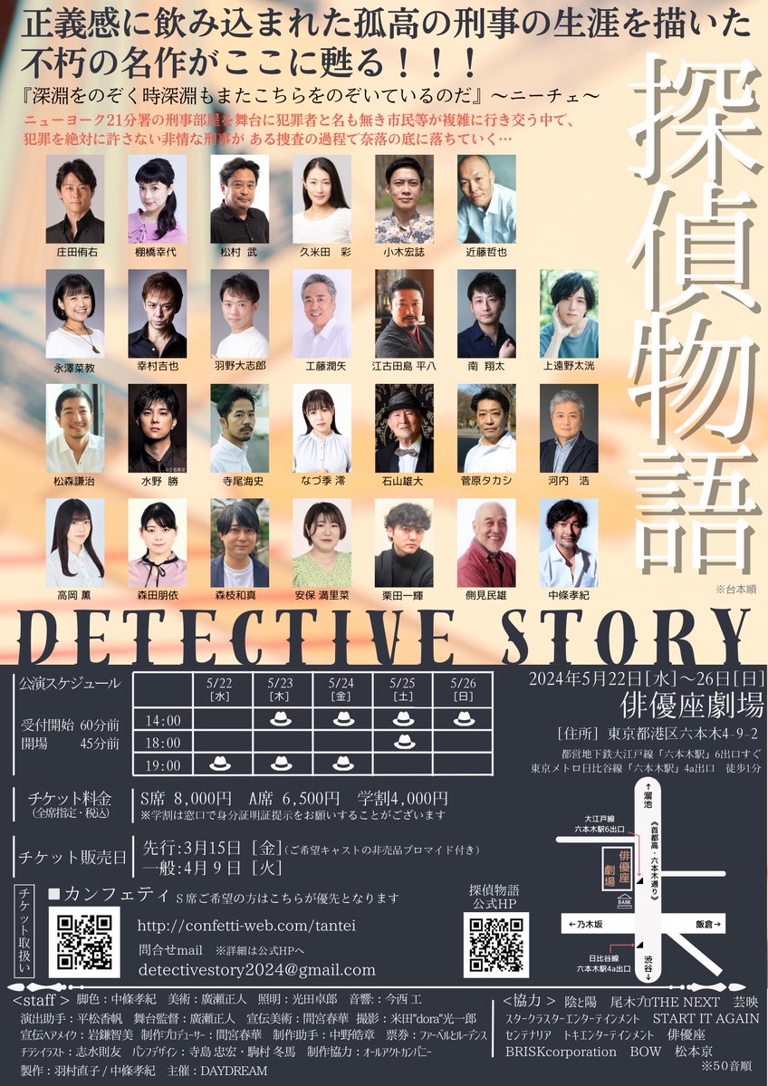 5月の舞台 #探偵物語 「ついにこの芝居(演技)で舞台に立たせていただける日が?!」と #俳優座劇場 という伝統ある劇場に想いを馳せております